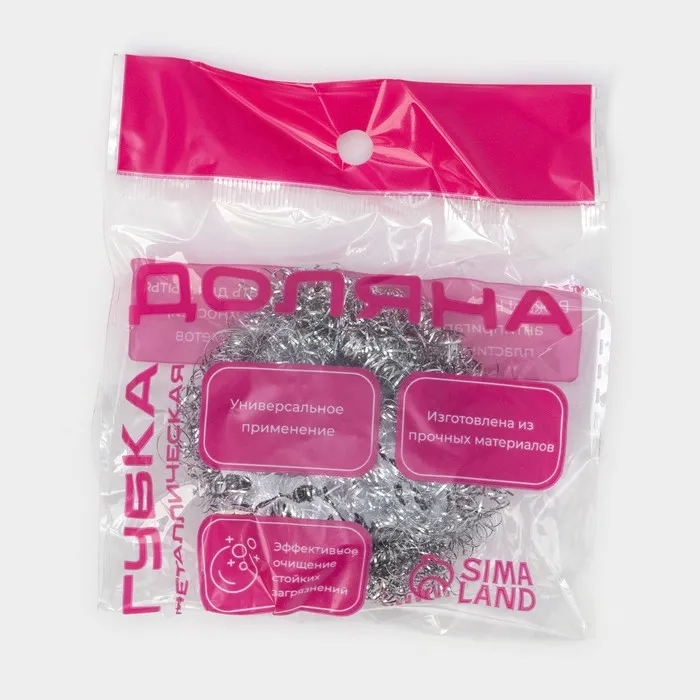 Компактные размеры (6×6×2 см) делают её удобной в использовании, а лёгкий вес в 8 граммов позволяет легко маневрировать даже в самых труднодоступных местах. Изготовленная из прочного металла, эта губка идеально подходит для мытья посуды, а также для очистки овощей, что делает её многофункциональным инструментом для вашей кухни.