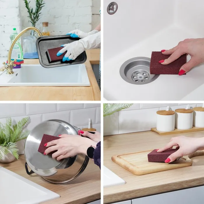 - Эффективность: специальная структура абразива оттирает даже самые трудные пятна, делая уборку легкой и быстрой.