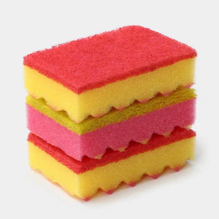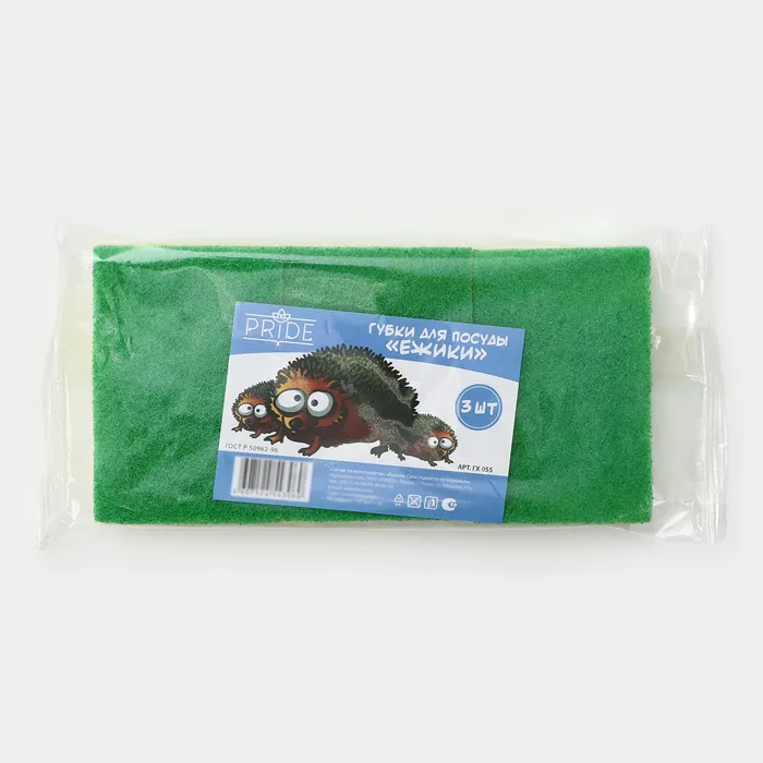 Губка для посуды с чистящим слоем PRIDE, 3 шт, 100×65×30 мм, МИКС — Характеристики