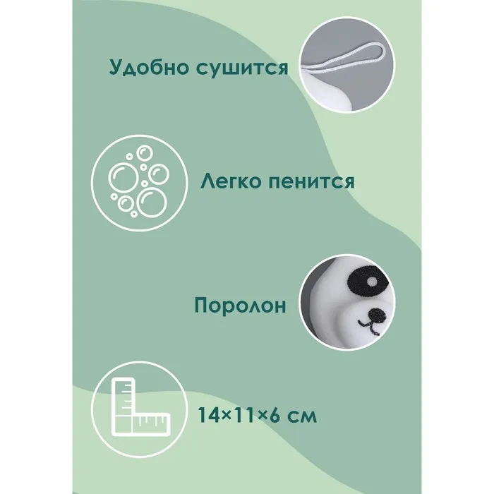 Губка для тела Доляна «Панда», детская, для купания, 14×11 см, белая — Характеристики