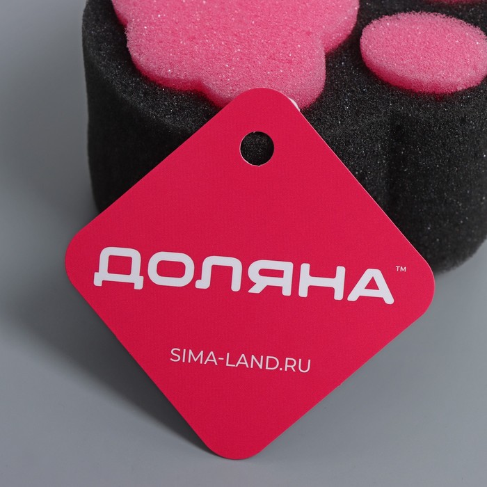 Губка для тела Доляна «Розовая пантера», детская, для купания, 10,8×10,9 см, цвет чёрный/розовый — Характеристики