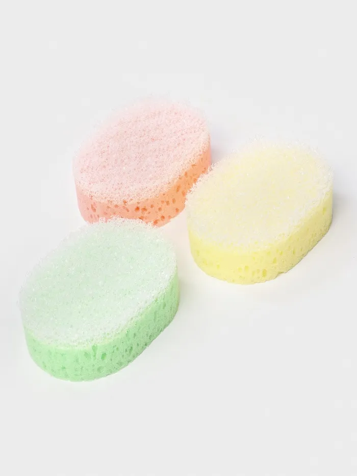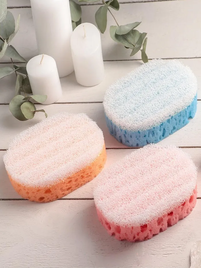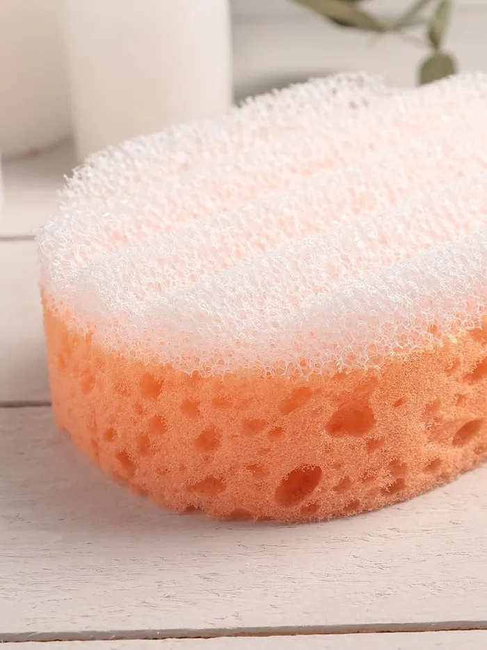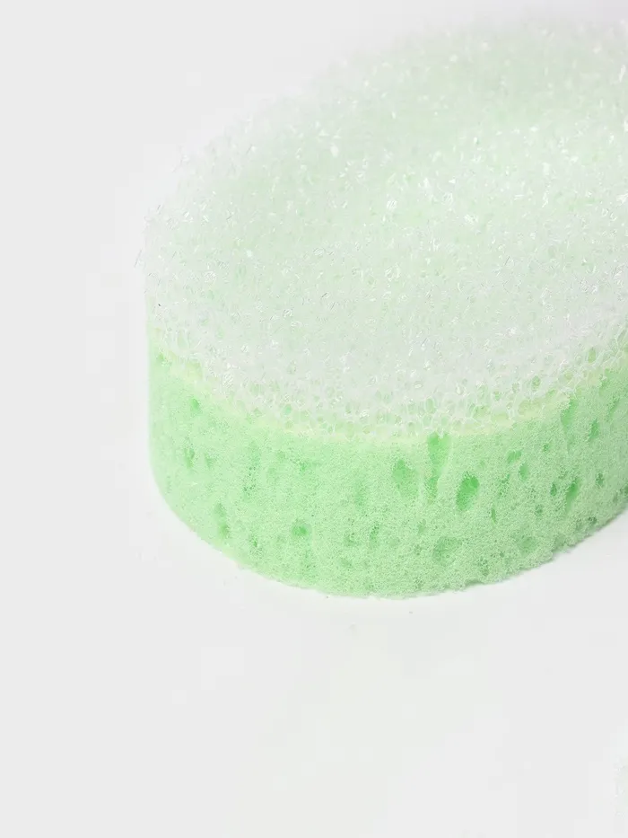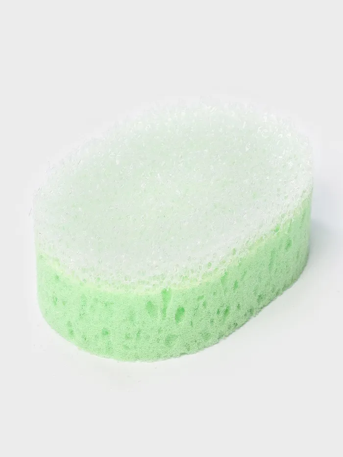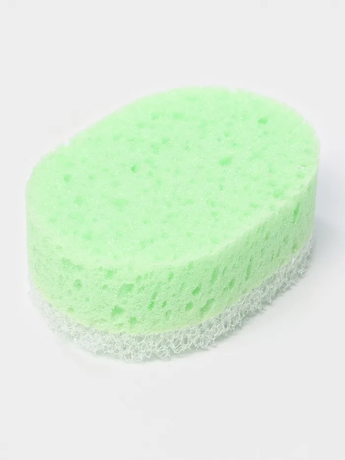 Губки состоят из двух слоёв — мягкого деликатного и грубого пористого. Изделия хорошо применять для массажа тела. Шероховатая сторона губки эффективно стимулирует кровообращение, отшелушивает и удаляет мёртвую кожу. Благодаря пористой структуре губки моющие средства обильно пенятся даже в небольшом количестве.