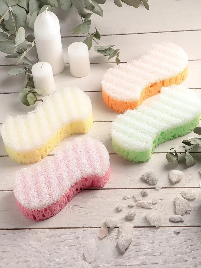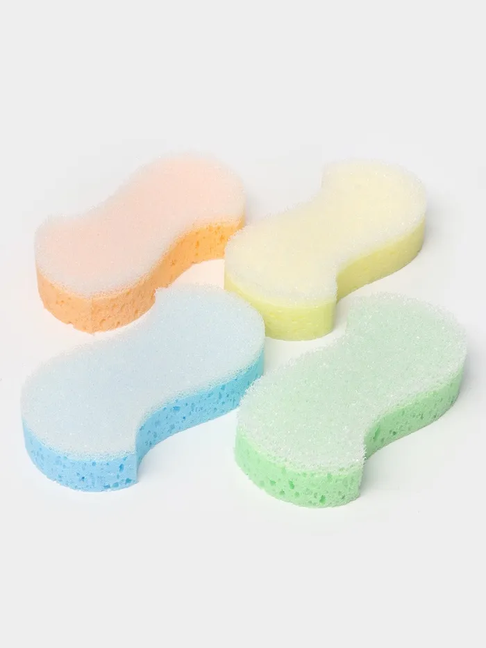 Губки состоят из двух слоёв — мягкого деликатного и грубого пористого. Изделия хорошо применять для массажа тела. Шероховатая сторона губки эффективно стимулирует кровообращение, отшелушивает и удаляет мёртвую кожу. Благодаря пористой структуре губки моющие средства обильно пенятся даже в небольшом количестве.