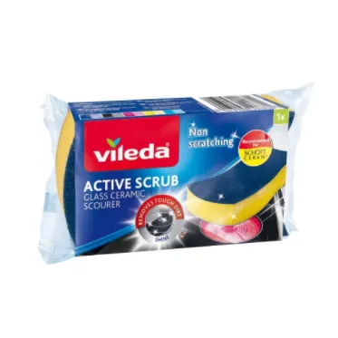 Губка для очистки плит Vileda Active Scrub не царапает пригоревшие загрязнения и пятна. Абразивная поверхность губки, специально разработанна для очистки керамической варочной панели, эффективно удаляет жир и грязь, придавая варочной поверхности сияние чистоты. Форма губки позволяет очистить труднодоступные места.