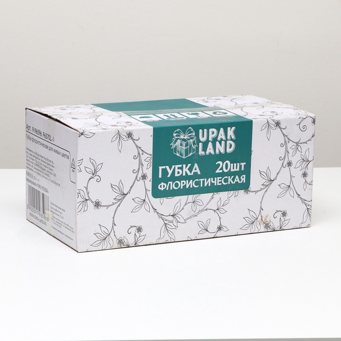 Губка флористическая для живых цветов, букетов "UPAK LAND" 22.5×10.5×7 см