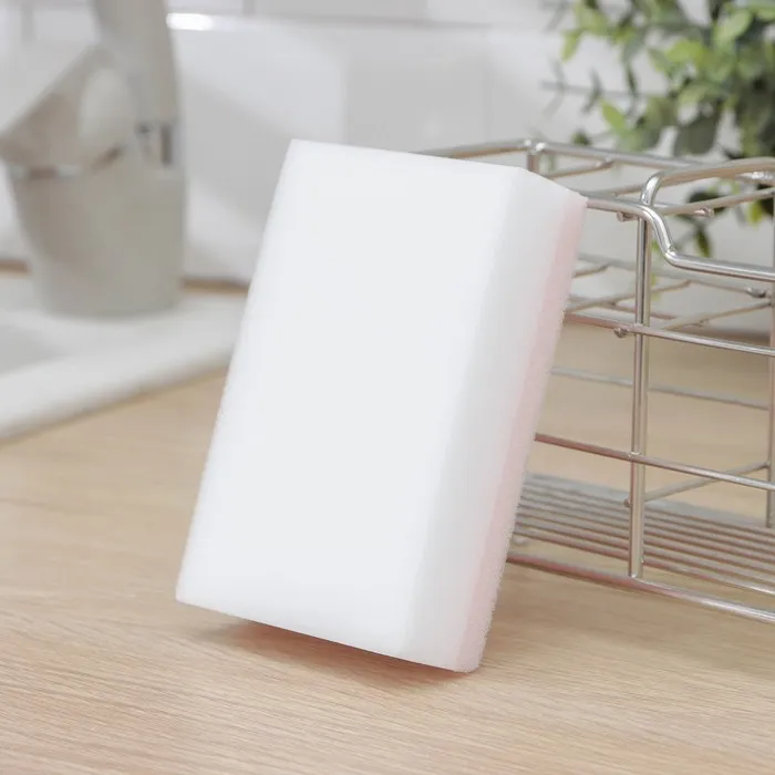 Меламин — пластик нового поколения, который выглядит как самая обычная губка, но имеет совершенно другую структуру. На ощупь он больше напоминает тонкую наждачную бумагу, но, что важно, не царапает очищаемые поверхности.
