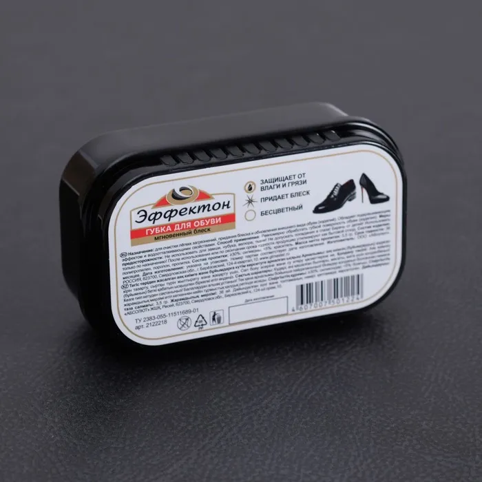 Губка от торговой марки «Эффектон» придаст обуви блеск, эластичность и обновит цвет кожи. Средство обеспечивает защиту от вредного воздействия влаги и соли, предохраняет от трещин и старения, защищает от загрязнения.