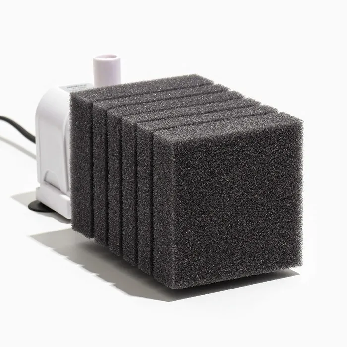 Вода, проходя через губку, проходит через различные слои материалов и фильтруется от разных размеров частиц. Её необходимо периодически чистить или заменять, чтобы поддерживать эффективность фильтрации в аквариуме.