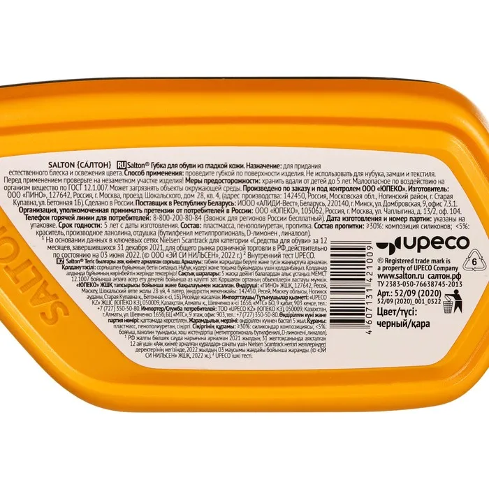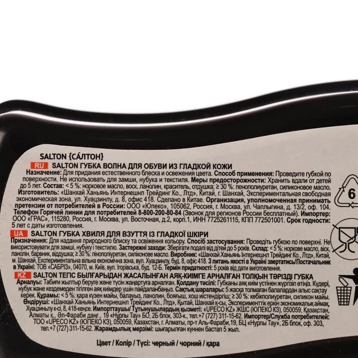 Благодаря инновационной Технологии All-Day-Effect Губка SALTON поддерживает ухоженный вид обуви в течение всего дня: очищает от пыли, загрязнений и придает естественный блеск. Компактный размер Губки-мини SALTON позволяет везде носить ее с собой.