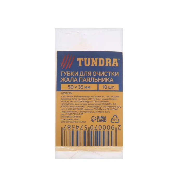 Губки для очистки жала паяльников ТУНДРА, 50×35 мм, 10 шт. — Характеристики