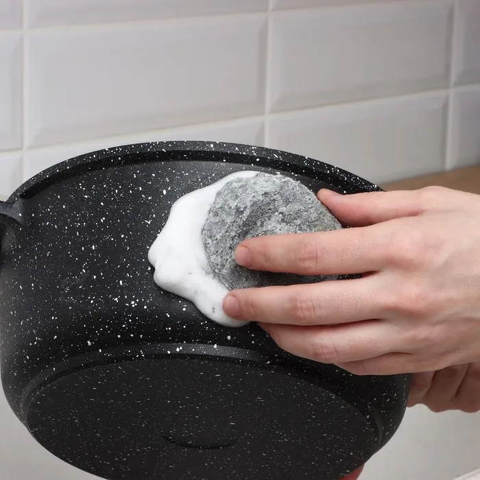 Каждая губка создана из ультратонкого металлического волокна, которое легко справляется с самыми стойкими загрязнениями, не оставляя царапин на поверхности. Натуральное мыло, интегрированное в структуру губки, обеспечивает нежный и безопасный уход за вашей посудой, плитами, ваннами и раковинами, исключая необходимость использования агрессивных химических средств.