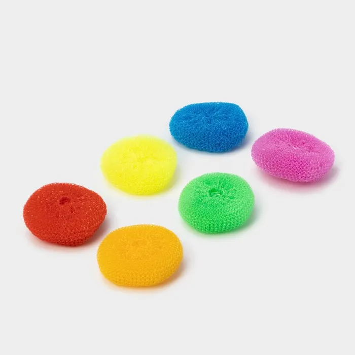 Губки для посуды Доляна «Бублик», 6 шт., пластик, 7×7×2.5 см, МИКС