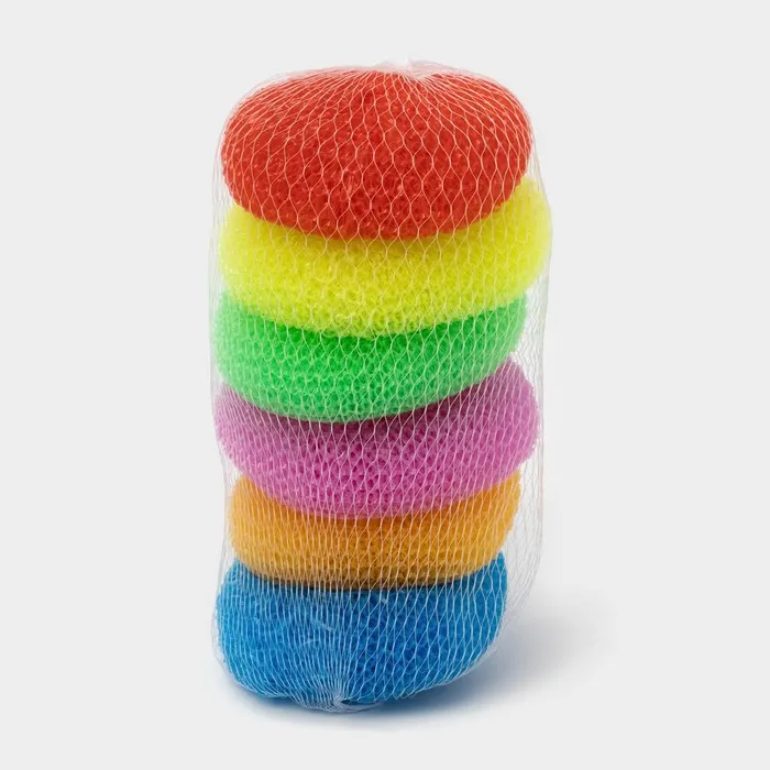 Губки для посуды Доляна «Бублик», 6 шт., пластик, 7×7×2.5 см, МИКС — Характеристики