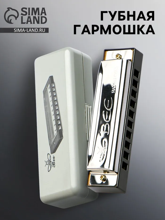 Губная гармошка, диатоническая, 10 отверстий, c-major, с футляром, серебристая — Характеристики