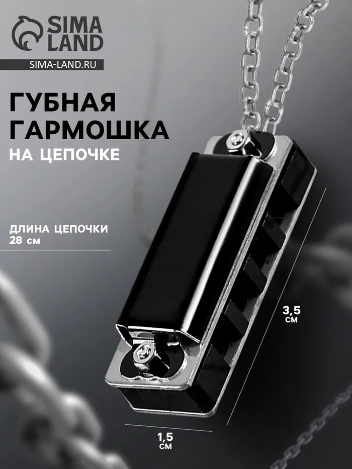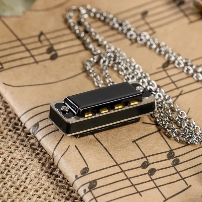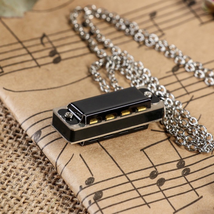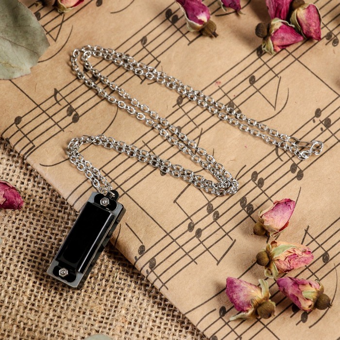 Губная гармошка Music Life 4 отверстия, 8 тонов, 3.5×1.5×1 см, цепь 28 см, черная — Характеристики