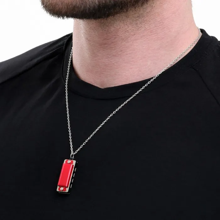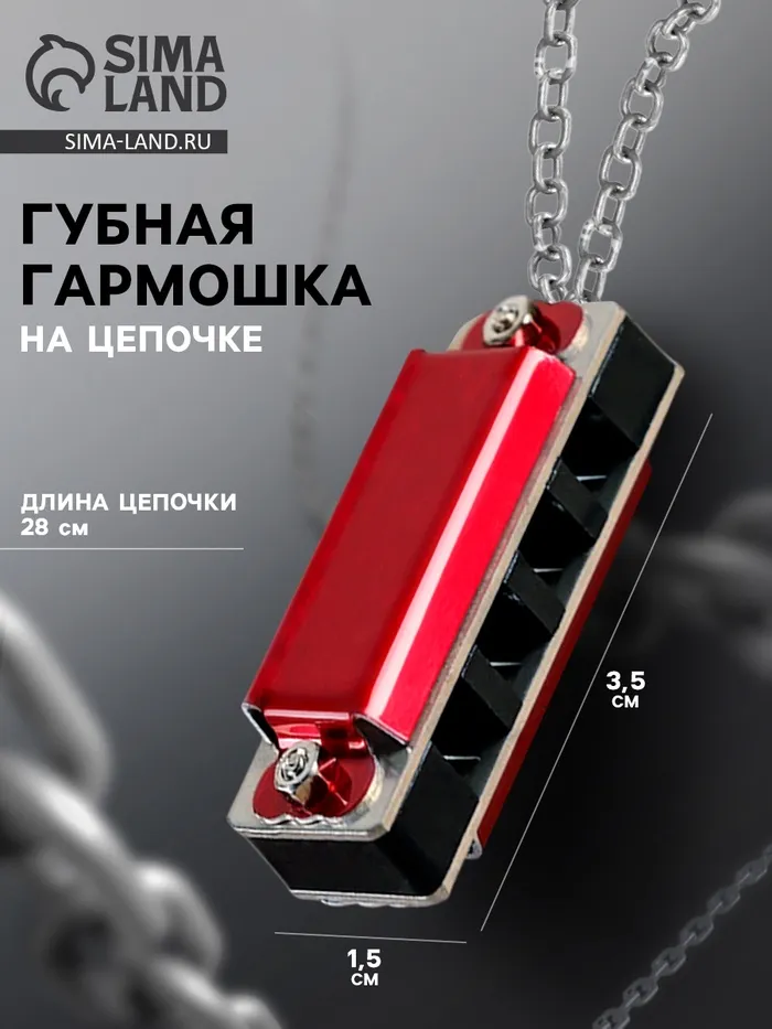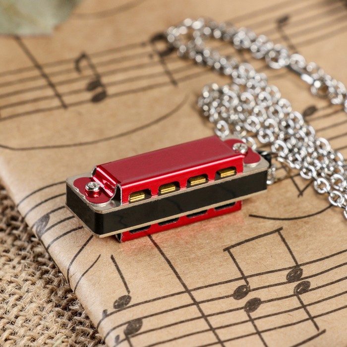 Губная гармошка Music Life 4 отверстия, 8 тонов, 3.5×1.5×1 см, цепь 28 см, красная — Характеристики