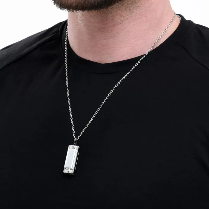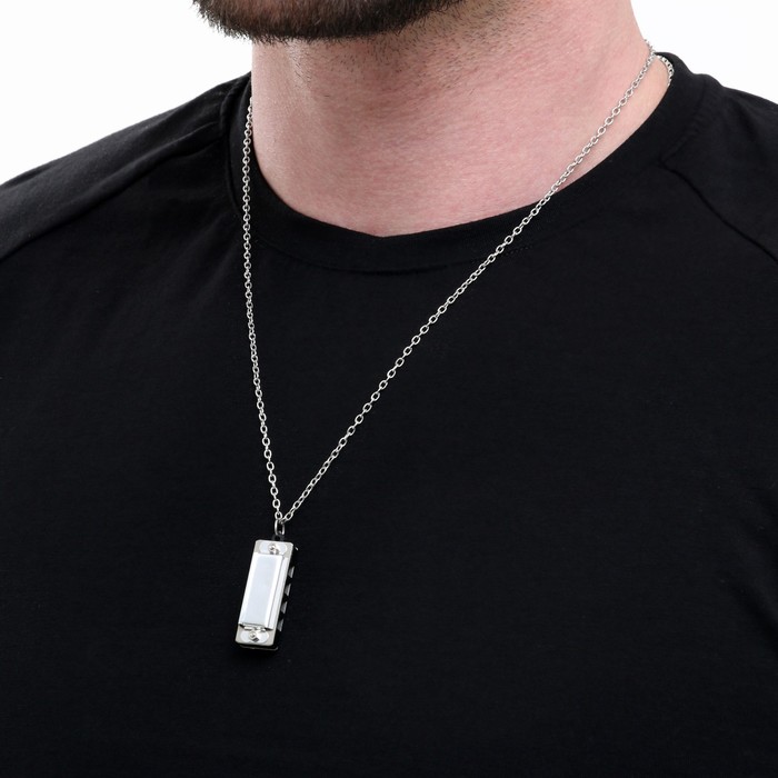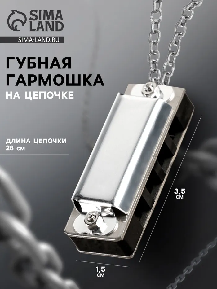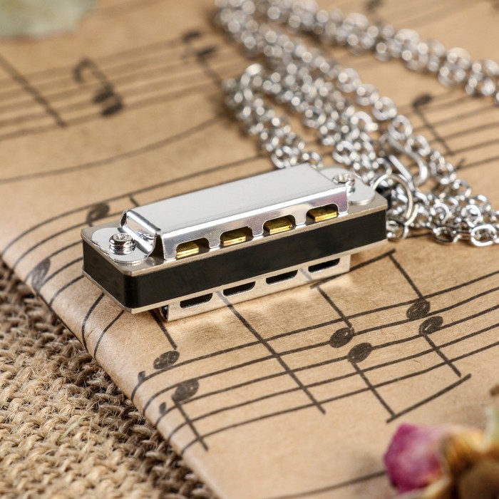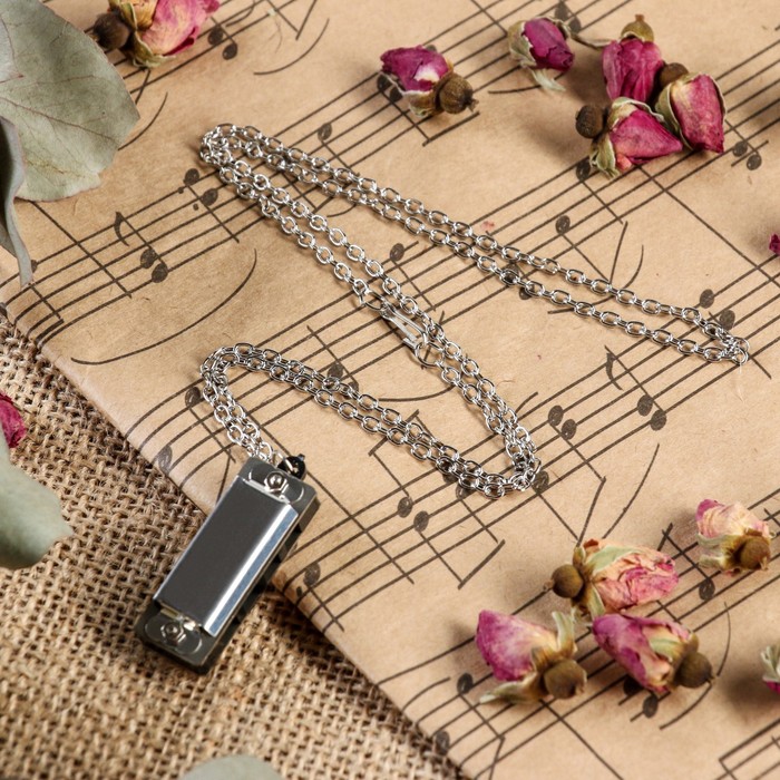 Губная гармошка Music Life 4 отверстия, 8 тонов, 3.5×1.5×1 см, цепь 28 см, серебристая — Характеристики
