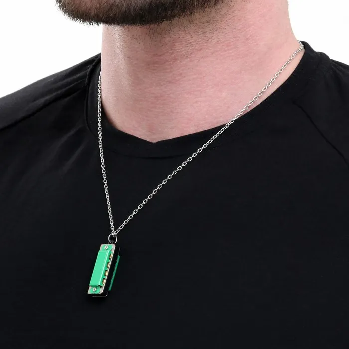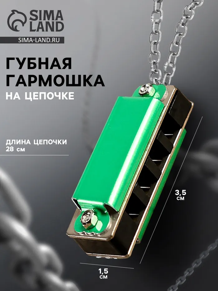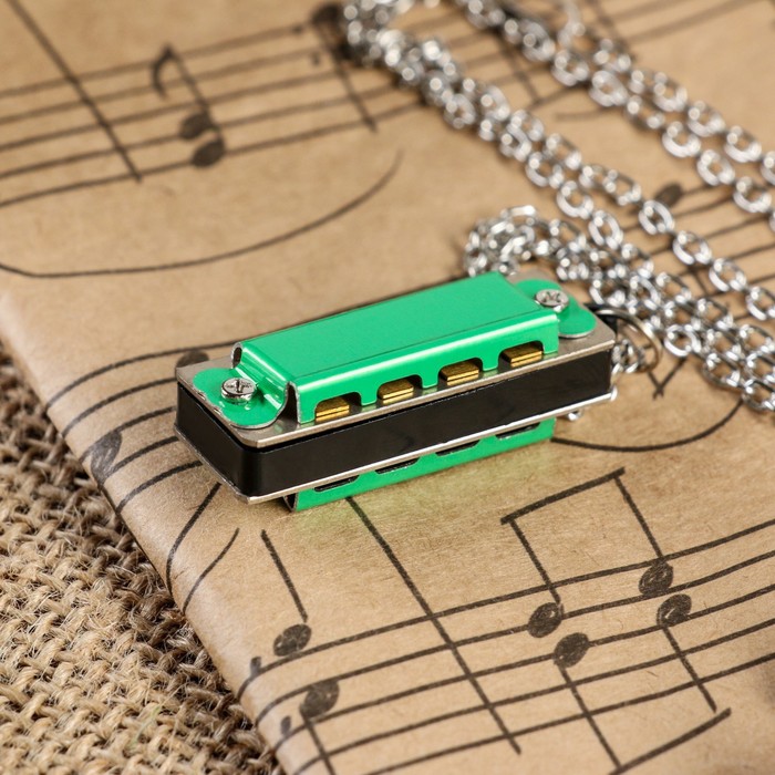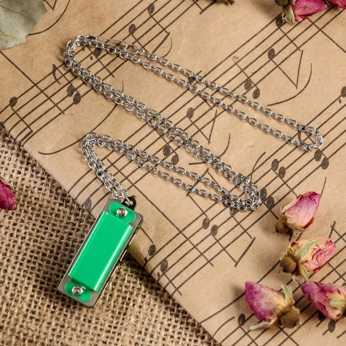 Губная гармошка Music Life 4 отверстия, 8 тонов, 3.5×1.5×1 см, цепь 28 см, зеленая — Характеристики