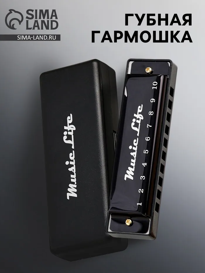 Губная гармошка Music Life, диатоническая, C-major, с футляром, черная — Характеристики