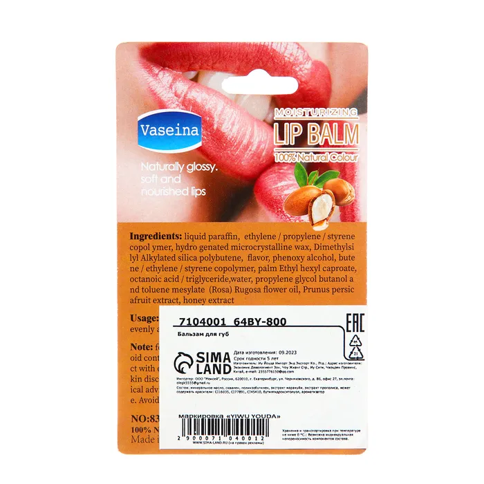Способ применения: равномерно наносить на губы по мере необходимости.