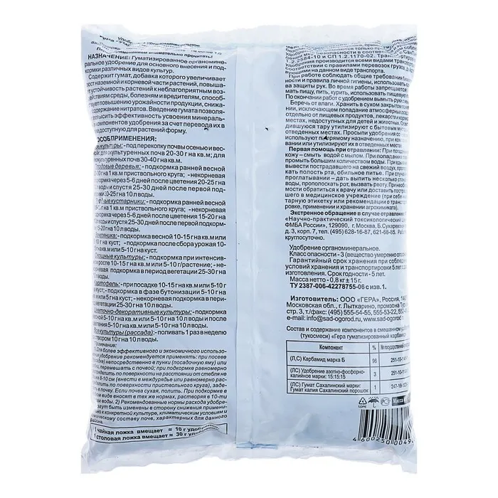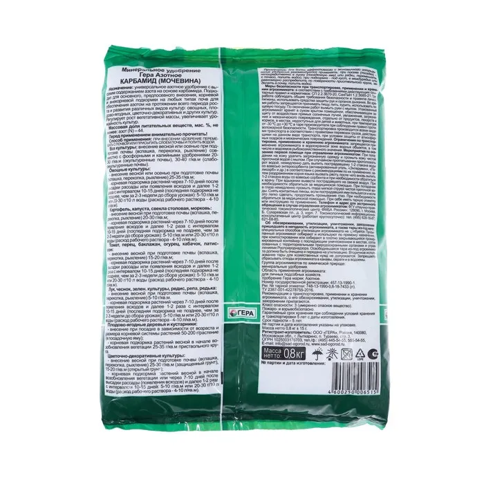 Гуматизированный карбамид "ГЕРА", 0,8 кг — Характеристики