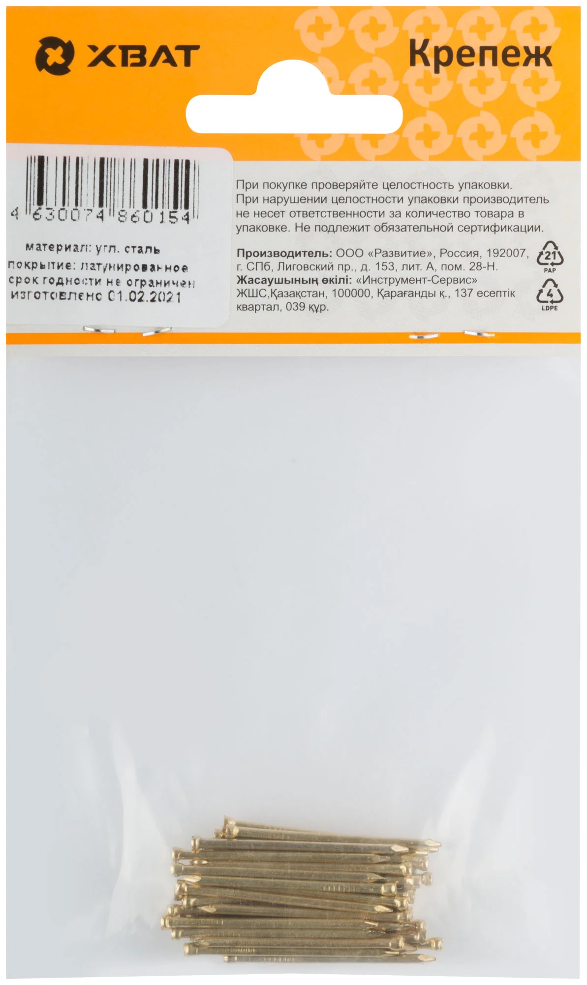 Латунированные гвозди XВАТ — это выбор профессионалов, ценящих долговечность и аккуратность. Применяются как для внутренних, так и для наружных работ, обеспечивая надежное крепление.