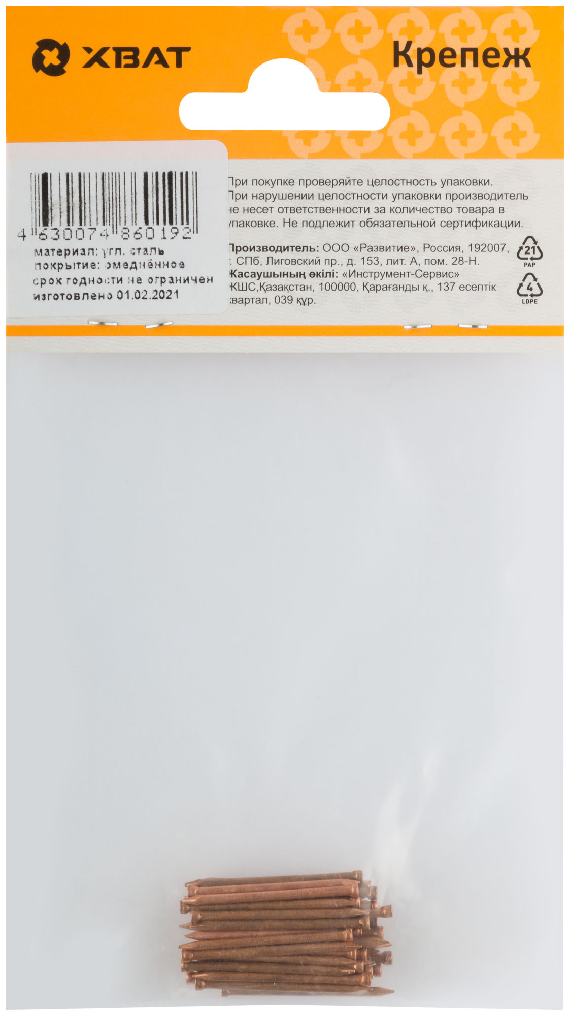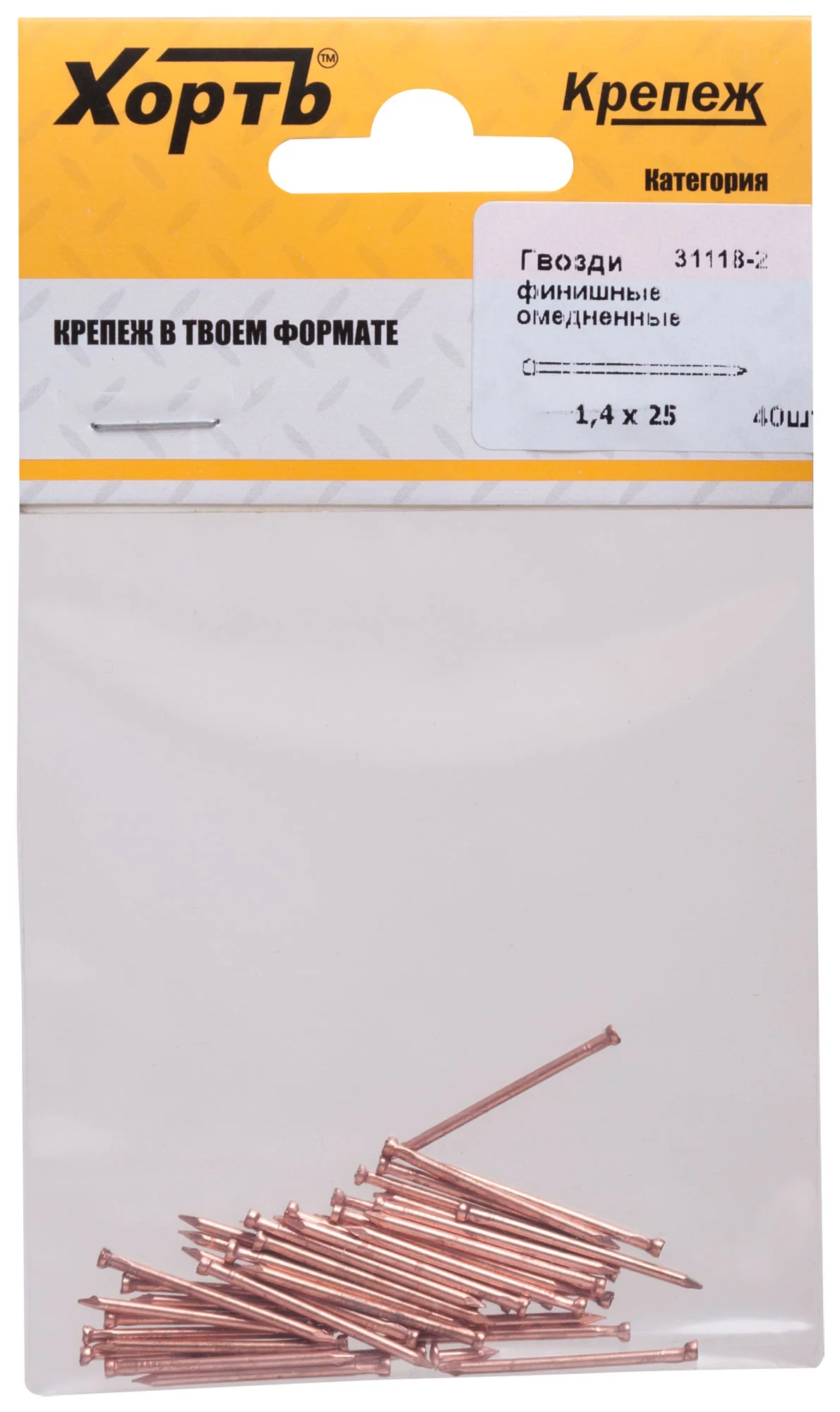 Омедненные финишные гвозди XВАТ размером 1,4 х 25 мм — это идеальный выбор для отделочных работ, таких как крепление деревянной вагонки или другие внутренние и наружные отделочные задачи. Они помогут аккуратно и надежно закрепить элементы без лишних следов на поверхности.