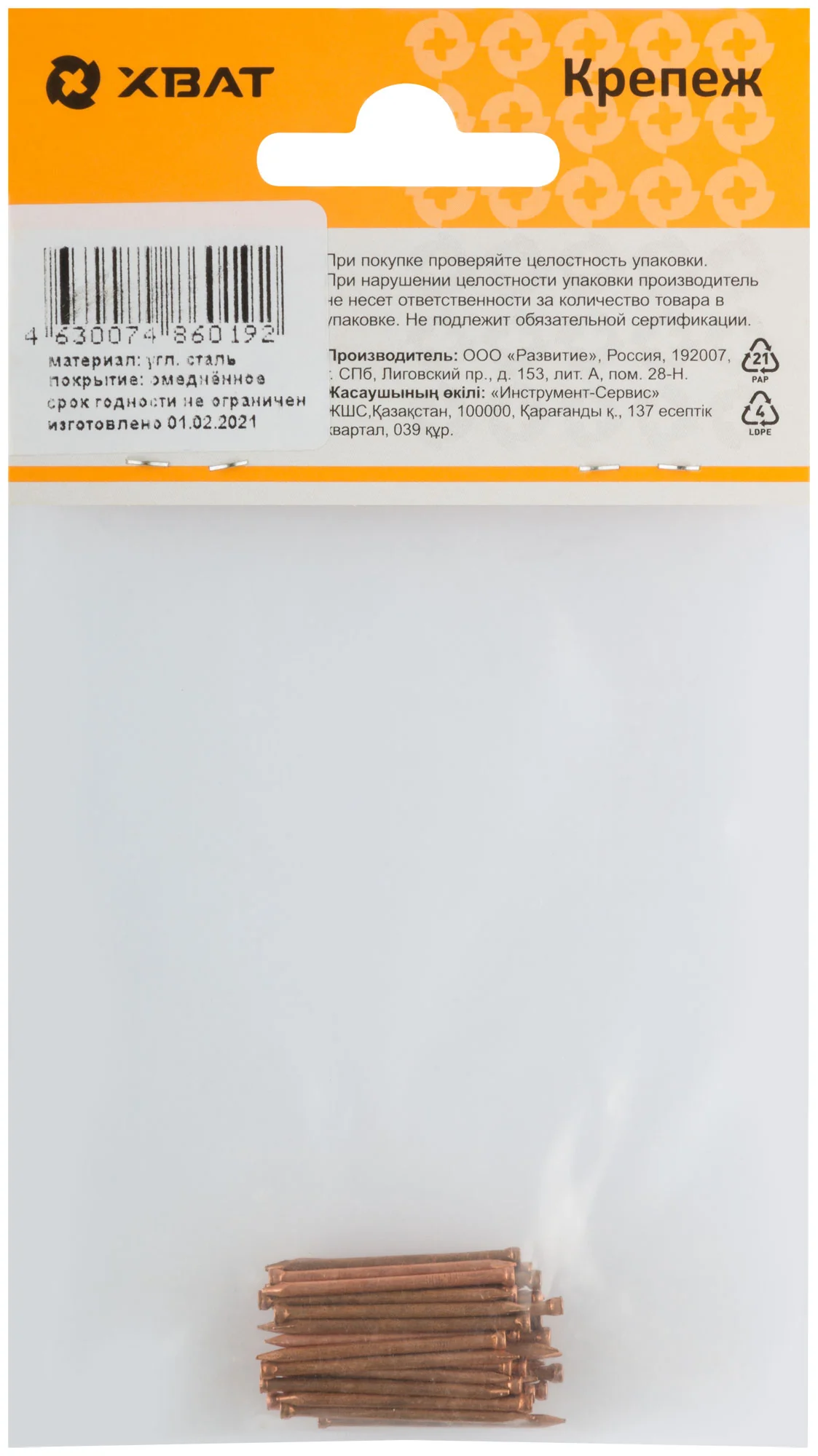 Одним из главных преимуществ этих гвоздей является их омедненное покрытие, которое защищает металл от коррозии и увеличивает срок службы крепежа даже в условиях повышенной влажности.