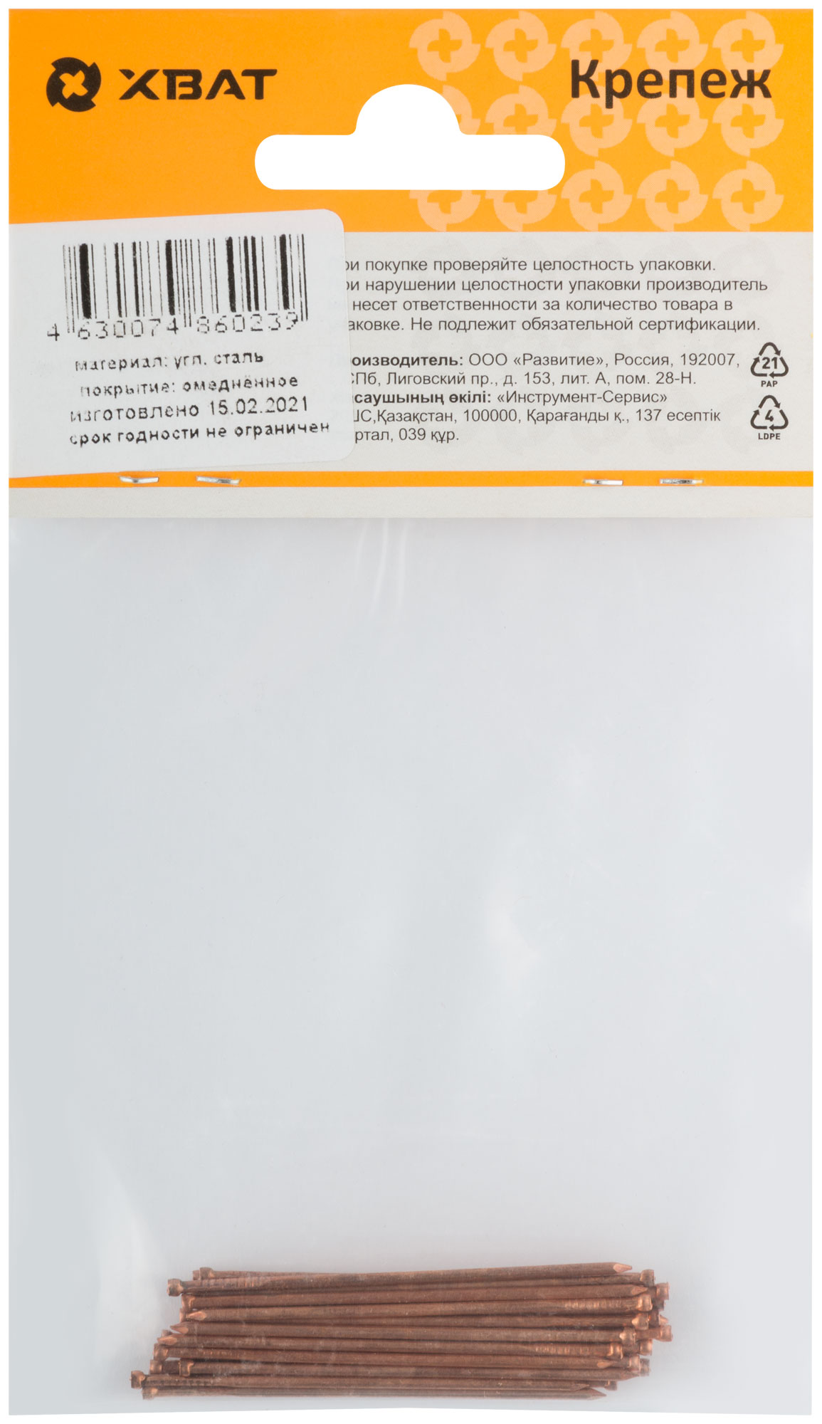 Изготовленные из стали и покрытые медью, эти гвозди обладают высокой устойчивостью к коррозии, что делает их идеальными для использования в различных условиях. В упаковке содержится 30 штук, что позволяет рационально использовать материал на протяжении всего процесса работы.