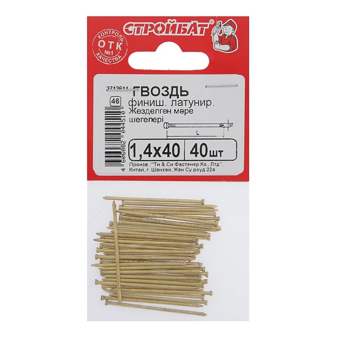 Гвозди СТРОЙБАТ, финишные, ГОСТ 7811-7035, латунированные, 1.4×40 мм, 40 шт. — Характеристики
