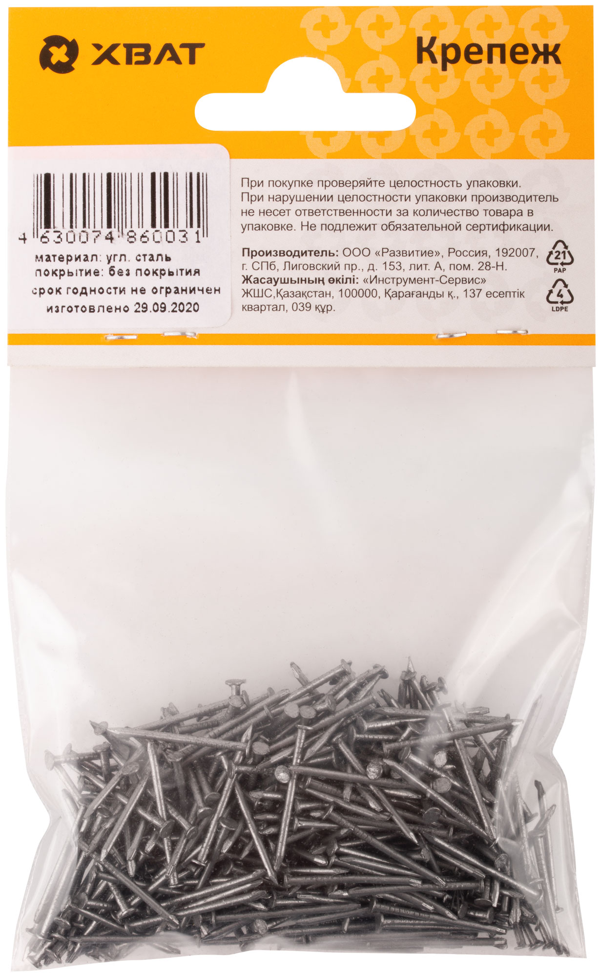 Гвозди изготовлены из качественной стали, что гарантирует их долговечность и надежность. Они не имеют покрытия и отличаются шлифованной поверхностью, что способствует легкому вхождению в материал.