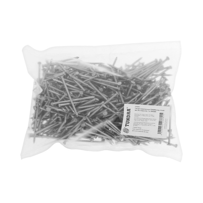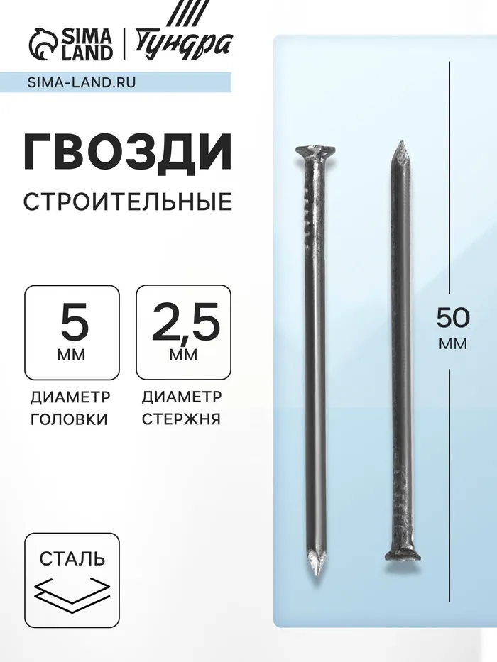Гвозди ТУНДРА, строительные, ГОСТ 4028-63, без покрытия, 2.5×50 мм, фасовка 1 кг — Характеристики
