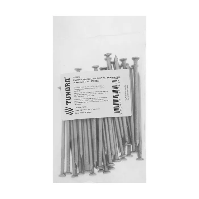 Гвозди ТУНДРА, строительные, ГОСТ 4028-63, без покрытия, 3×70 мм, фасовка 0.2 кг — Характеристики