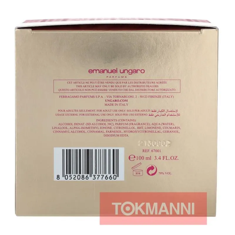 Эта парфюмерная вода от Emanuel Ungaro станет отличным дополнением к вашему образу, придавая ему нотки роскоши и утонченности. Каждая деталь, от аромата до упаковки, создана с вниманием к деталям, что делает этот продукт идеальным подарком для вас или ваших близких.