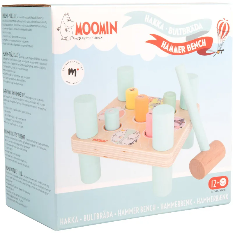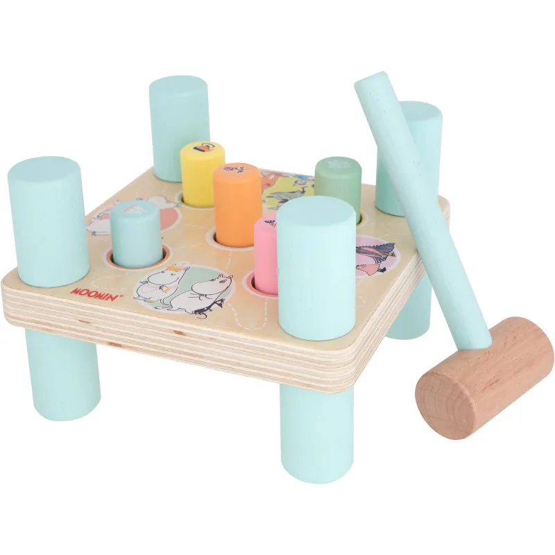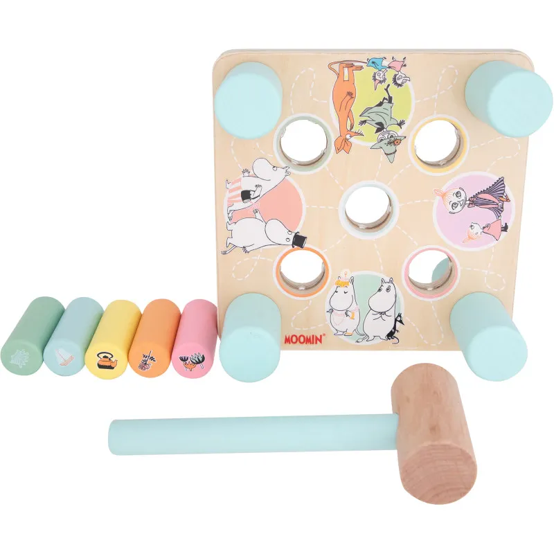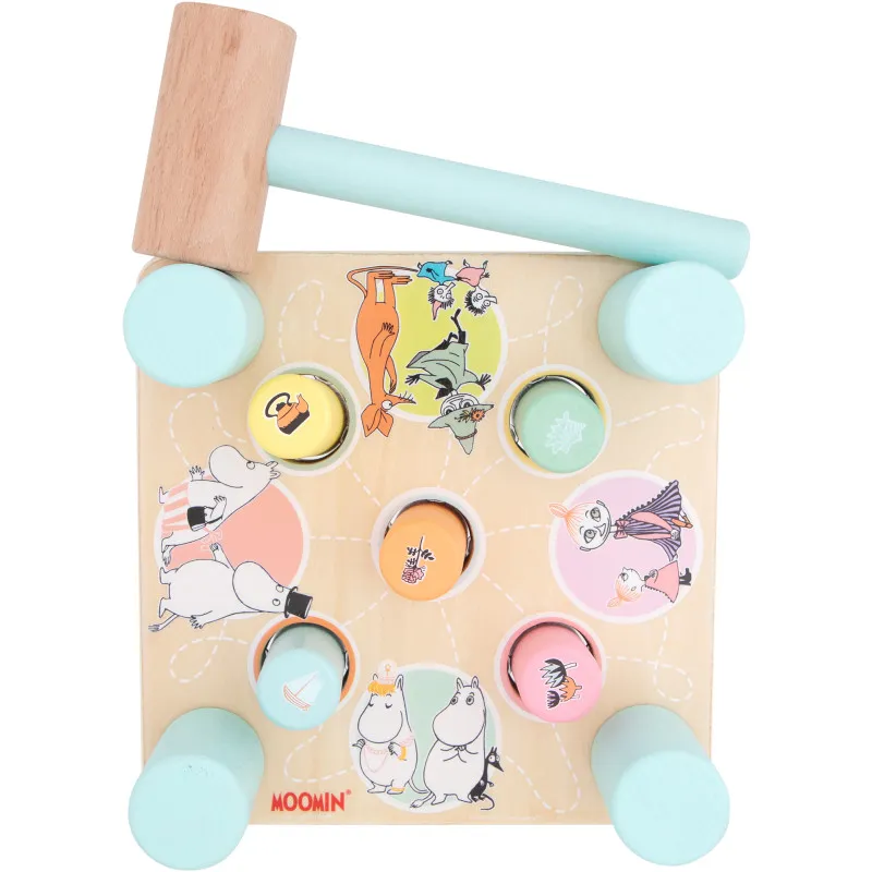 Классическая деревянная игрушка с темой Муми! Прочная квадратная доска с пятью болтами в красивых пастельных тонах. Обе стороны доски украшены забавными изображениями Муми. Забивайте деревянные болты деревянным молотком, переворачивайте доску и продолжайте игру на другой стороне. Игра на доске не только увлекательна, но и помогает ребенку развивать координацию рук и глаз, а также мелкую моторику.