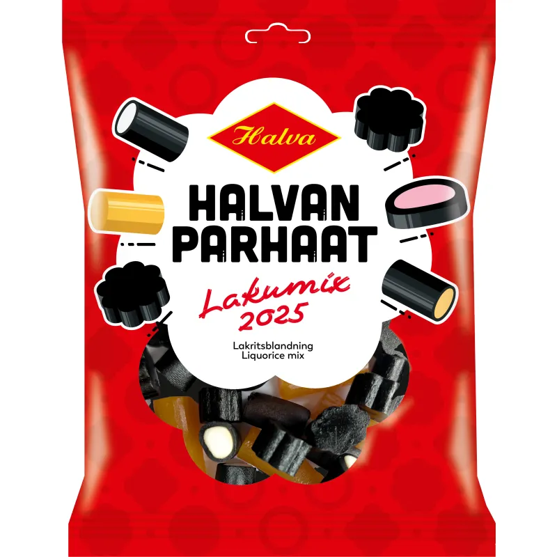 Halvan Parhaat Lakumix 2025 предлагает лучшие лакричные впечатления для всех любителей лакрицы. В смеси представлены классическая лакрица, экзотическая манговая лакрица, сладкая фруктовая лакрица с клубничной начинкой, бодрящая лакрица с банановой начинкой и освежающая лакрица с мятной начинкой.