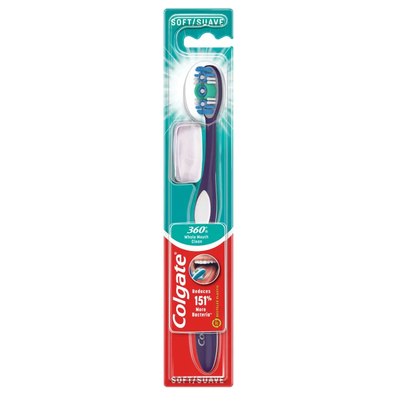 Эта щетка идеальна для тех, кто ценит полную чистку и комфорт при использовании. Мягкая щетина обеспечивает деликатную заботу о деснах, а удобный дизайн делает ее незаменимой как дома, так и в поездках. Позаботьтесь о здоровье полости рта с Colgate 360° Soft.