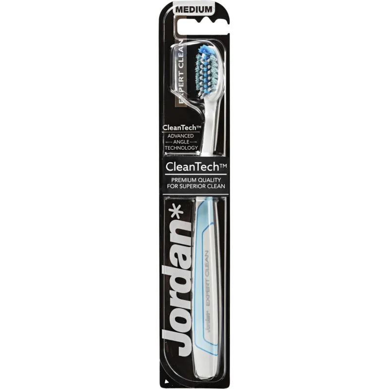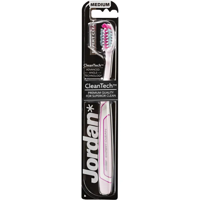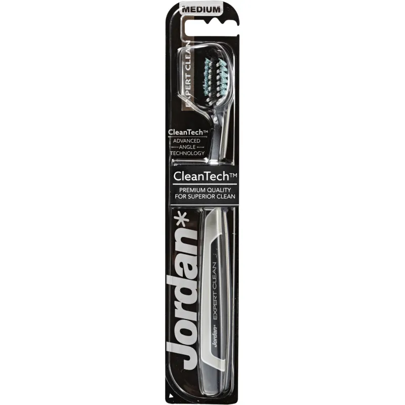 Зубная щетка Jordan Expert Clean сочетает в себе современный дизайн и чистоту вашей полости рта! Технология CleanTech в головке щетки обеспечивает точную очистку. Внешние щетинки заботятся о здоровье десен, концевые щетинки очищают задние зубы, а центральные щетинки удаляют налет с поверхности зубов. Эргономичная рукоятка обеспечивает надежный захват и улучшенный результат чистки. Щетка имеет среднюю жесткость щетинок.