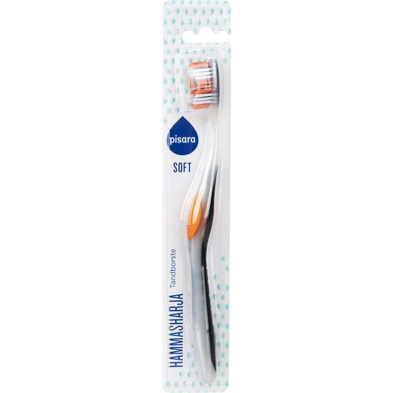 Мягкая зубная щетка Pisara с резиновыми ламелями полирует поверхность зубов и помогает удалять потемнения. Закругленные концы щетинок предотвращают повреждения десен и зубной эмали. Эргономичный дизайн и нескользящий материал ручки обеспечивают надежный захват. Доступна в нескольких цветах.