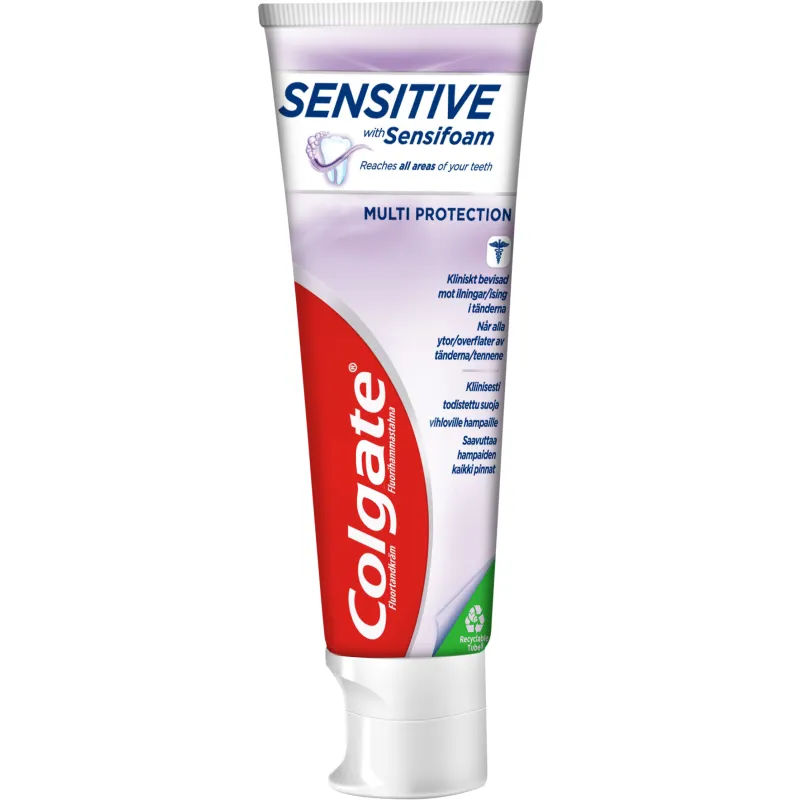 Зубная паста Colgate Sensitive Sensifoam Multiprotection специально разработана для чувствительных и реагирующих на раздражения зубов. Технология Sensifoam превращает пасту в нежную пену, которая эффективно и деликатно очищает полость рта. Пена легко проникает даже в самые труднодоступные участки, обеспечивая тщательную чистку. Состав с калием нитратом эффективно уменьшает чувствительность зубов, а натрий фторид защищает от кариеса и разрушения эмали. Почувствуйте чистоту и свежесть в вашем рту! Объем упаковки 75 мл.