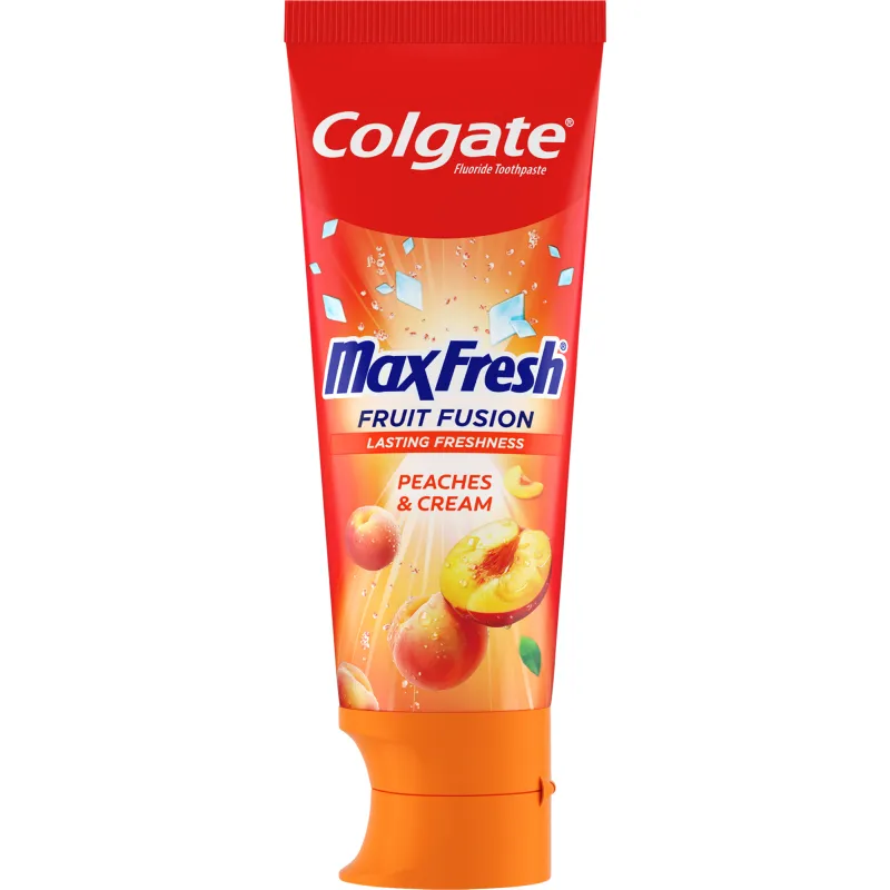 Зубная паста Colgate Max Fresh Fruit Fusion Персик и сливки подарит вам невероятное ощущение свежести и чистоты. Уникальная комбинация вкусов персика и сливок с технологией Ultrafreeze обеспечивают свежесть дыхания в 10 раз дольше, чем обычная фтористая зубная паста.