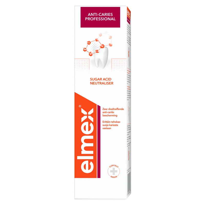 Elmex Anti-Caries Professional — это эффективная зубная паста для защиты от кариеса. Её аминофторидная формула создает защитный, двухслойный кальций-фторидный барьер, который реминерализует зубы и эффективно предотвращает их разрушение.