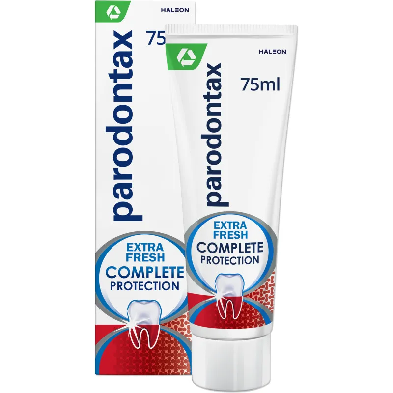 Зубная паста Parodontax Complete Protection Extra Fresh подходит для решения проблем с деснами и способствует их здоровью, укрепляя зубы восемью различными способами. Она помогает остановить и предотвратить кровоточивость десен* и эффективно удаляет зубной налет. Паста также глубоко очищает и освежает рот, устраняет неприятный запах изо рта и бережно отбеливает зубы.