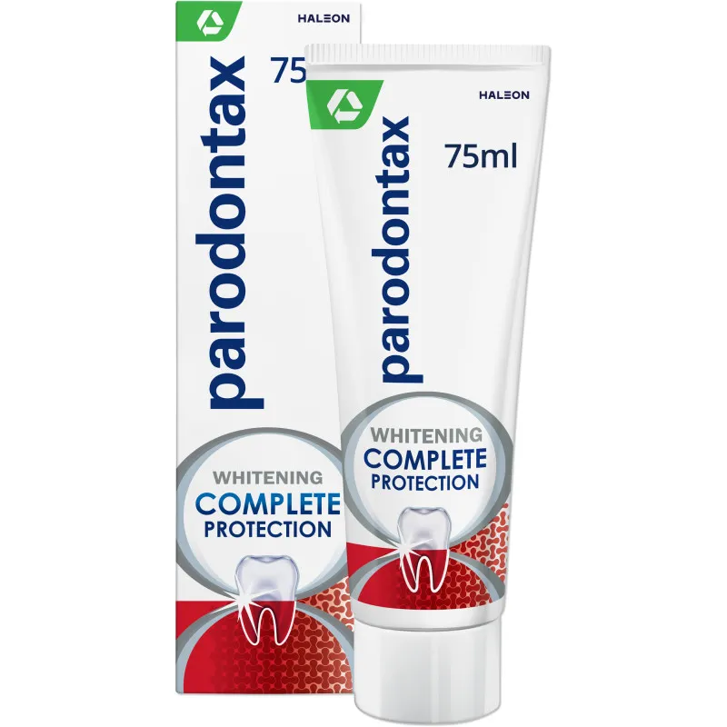 Зубная паста Parodontax Complete Protection Whitening помогает поддерживать здоровье десен и укреплять зубы. При регулярном использовании дважды в день она помогает остановить и предотвратить кровоточивость десен. Одновременно она эффективно удаляет налет, глубоко очищает и освежает полость рта. Паста также устраняет неприятный запах изо рта и бережно отбеливает зубы. Объем упаковки 75 мл.