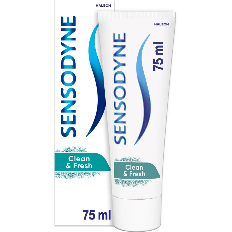 Зубная паста Sensodyne Clean & Fresh разработана специально для защиты чувствительных зубов. При использовании дважды в день она обеспечивает долгосрочную защиту от чувствительности и помогает предотвратить образование зубного налета, поддерживая здоровье десен. Фтор в составе пасты защищает зубы от кариеса, а после чистки остается ощущение исключительной чистоты. Объем упаковки: 75 мл.