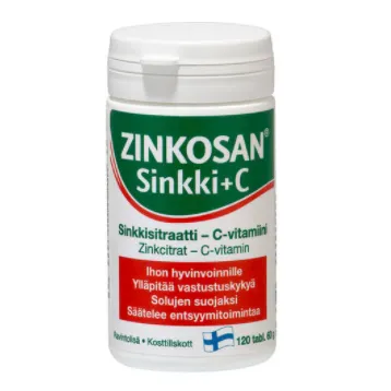 Цинк регулирует активность около 200 ферментов. Помимо прочего, он влияет на иммунную резистентность, фертильность и состояние кожи, волос и ногтей. Цинк и витамин С - антиоксиданты, защищающие клетки. Цинк и витамин С вместе дополняют действие друг друга. Цинк участвует в регуляции эндокринной функции, влияя на половые и тироидные гормоны, а также на выработку инсулина. Витамин C, содержащийся в Zinkosan, важен для иммунитета, хорошего самочувствия кожи, десен, кровеносных сосудов.