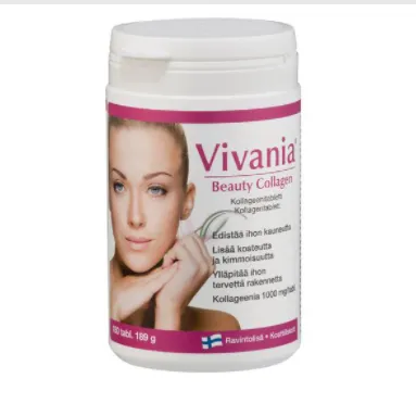 Коллаген Vivania Beauty 189 г / 180 таблеток. Белок коллагена, натуральный ингредиент кожи, который помогает коже сохранять упругость и эластичность. Коллаген также содержится в волосах, ногтях и тканях суставов. В среднем 75% молодой и здоровой кожи состоит из коллагена. Коллаген Pepta - это небольшая молекула, которая обеспечивает его отличное усвоение. Источником пептанового коллагена является высококачественный гидролизованный рыбий коллаген. Пептиды пептанколлагена добавляют строительный материал к образованию цепей коллагена и эластина и увеличивают синтез фибробластов, коллагена и гиалуроновой кислоты в организме. С возрастом способность организма вырабатывать коллаген снижается, что снижает эластичность и жизнеспособность кожи. Коллагеновые таблетки Vivania Beauty улучшают красоту и жизнеспособность кожи, питая и увеличивая влажность кожи изнутри, повышение упругости и эластичности кожи, а также поддержание здоровой структуры кожи.