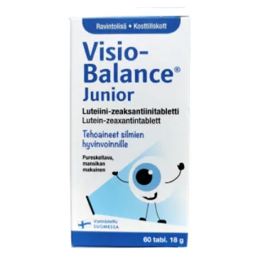 - Жевательные таблетки Visiobalance® Junior со вкусом клубники содержат стандартизированное количество лютеина и зеаксантина, извлеченных из цветков календулы. Продукт рекомендуется для напряженных и светочувствительных глаз, а также для защиты глаз от вредного синего света.