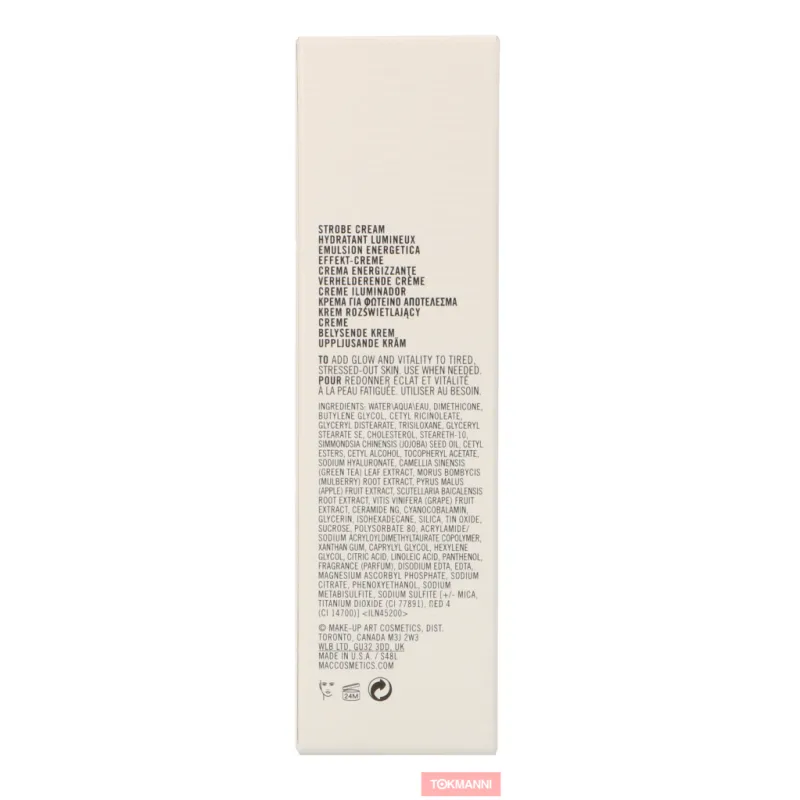 Крем MAC Strobe Goldlite представлен в упаковке объемом 50 мл, что делает его идеальным для повседневного использования. Размеры упаковки: высота – 13.7 см, ширина – 3.7 см, длина – 3.7 см.