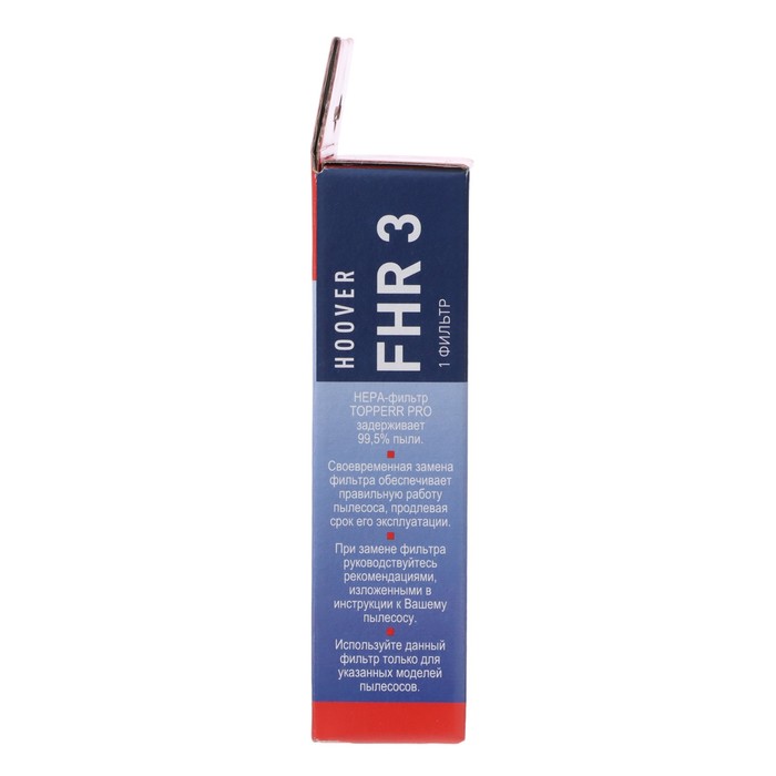 Нера-фильтр FHR 3 подходит для пылесосов HOOVER. Обладает высокой степенью фильтрации, задерживает 99,5 % пыли. Благодаря специальным свойствам фильтрующего материала улавливает мельчайшие частицы, очищает воздух от пыльцы, микроорганизмов, бактерий и пылевых клещей.
